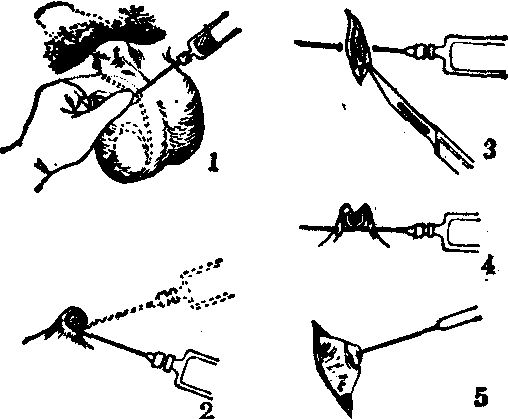 (1)(2)穿刺固定输精管 (3)(4)切开 (5)钩提出输精管