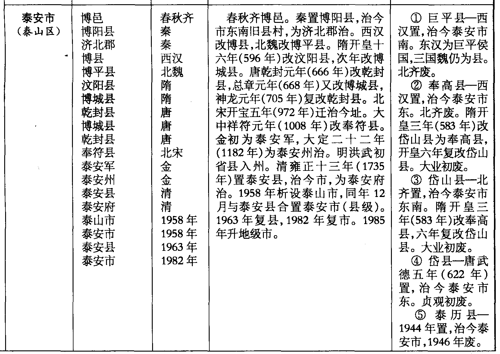 ❺ 泰历县—1944年置,治今泰安市,1946年废。