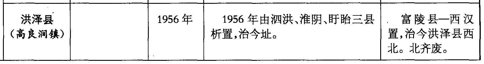 洪泽县(高良涧镇)1956年1956年由泗洪、淮阴、盱眙三县析置,治今址。富陵县—西汉置,治今洪泽县西北。北齐废。