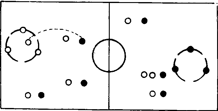 释义 | 活动篮筐 活动篮筐Huodong lankuang适用于4—6年级。可以提高学生观察判断和移动中传接球的能力。 器材 小篮球1个。 场地 篮球场或一块16×10米的长方形空地。游戏方法 把学生分成人数相等的两队, 各队指定3人, 两臂侧平举手拉手成一个圆形, 作为 “活动篮”在本方半场任意移动。游戏从中圈跳球开始,获球的队通过传球、接球组织进攻, 设法将球投入对方的“活动篮”中,投中后防守队从本队端线后发界外球继续比赛。在防守过程中, 如果抢到球可随时转入反攻。在规定的时间内, 得分多的队为胜。 游戏规则 ❶做“活动篮”的队员,不许松手或缩成一团,必须保持圆形,只能用移动的方式不让对方投中。 ❷进攻队员只准传球,不准运球和持球跑,投中一次得2分。 ❸出现违例和犯规,均由对方发球。 ☚ 巧入营门 冻人 ☛ |