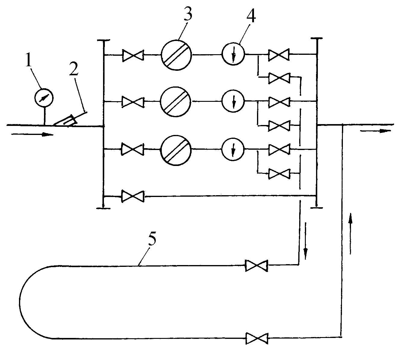 释义 | 流量计标定装置 流量计标定装置meter prover对使用中的流量计进行实液标定的标准体积流量装置。用以确定流量计的仪表系数和精度。标定设备有固定式或移动式标准体积管,标准流量计等。中国原油管道大多选用容积复现性优于±0.02%的标准体积管,即一段经特殊加工的容积精确的管道,其两个信号仪之间的基准容积一般为待检定的流量计的最大小时流量的0.5%。上图所示为标定系统的原理流程,正常输送时油流经过滤器和流量计后外输;标定时经阀门的自动切换,油流经过滤器、流量计,再流经标准体积管后外输,根据体积管上信号仪所检测的在一定时间内油流流过基准容积的次数,就可计算出准确的流量。