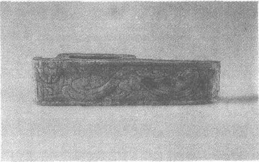 西汉早期。高1.6厘米,长9.5厘米,宽2.5厘米。1983年广东省广州市南越王赵昧墓出土。广东省广州市南越王墓博物馆藏。此青玉所制的玉璲浸蚀严重,表面涂有朱砂。其形制正视呈长方形,至两端向下内卷。周沿阴刻弦纹一周形成一方框,框内以阴线琢一螭虎形成浅浮雕效果。下部近一端有一长方形穿孔便于佩挂。玉璲见“勾连云纹玉璲”条目。
