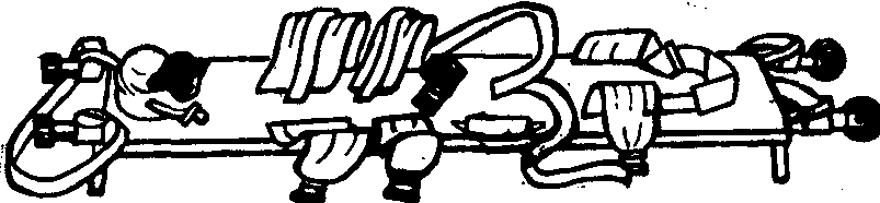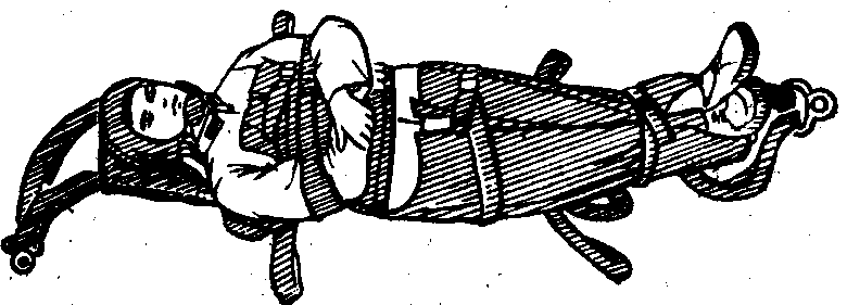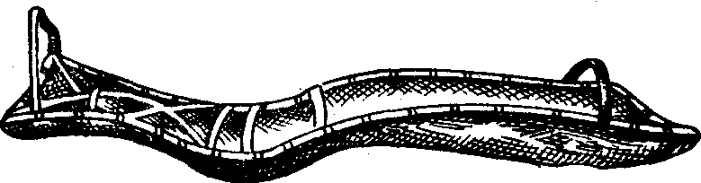 由于舰艇舱室舱门狭小,通道狭窄弯曲角度小,扶梯陡直,普通担架难以通行。当舰艇靠码头或两船舷靠时,又有高度差,也不宜用普通担架搬运伤员,需要制备舰上专用担架。为此,一些国家的海军研制出一些制式海军担架。如英国的N.Robertson担架(图1),历史悠久,至今仍为许多国家海军沿用。美国的Stokes担架(图2),苏联的Штиле担架(图3)。它们的共同特点是:框架尺寸短小,便于舰艇内通行。担架附有能固定伤员的襻带、帆布等物,牢靠安全,可作抬、吊、拉等各种方式的搬运。