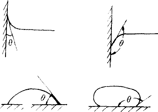 释义 | 浸润 浸润逐渐巴结、讨好。 ☚ 无为军 作耗 ☛ 浸润 浸润暗中替人说好话。 ☚ 牢头 方胜儿 ☛ 浸润 浸润此指小恩小惠。例第八回: “……那小厮说话乖觉,常跟西门庆在妇人家行走,妇人常与他些浸润,以此熟滑。” ☚ 傍个影儿 熟滑 ☛ 浸润jìnrùn慢慢渗入并使润泽 浸润jìnrùn❶ 〈动〉液体渐渐渗入:慢慢浸润│雨水浸润着土地。 浸润jìnrùn【释义】 浸润jìn rùn有机体的正常组织发生白细胞等聚集的现象。1919年汤尔和译《诊断学》下卷:“在所侵肺叶未受浸润之部,肺胞呼吸音锐利。在浸润部当第一期及第三期呼吸音为肺胞性而微弱或不定。”1931年《英汉对照百科名汇》:“Infiltration,浸润。”◇浸入。 浸润jìn rùn旧时染色业谓酸缸。《切口·染色业》:“浸润: 酸缸也。” 浸润比喻逐渐发生作用。《论语·颜渊》:“~之谮,肤受之诉。”(谮zèn:诬陷,中伤人的谗语。) 沾染 沾染沾(沾附) 擩 染(染惹;染渍;点染;渐染;薰染;濡染) 渍 洿 惹 着末 另见:污染 玷污 ☚ 侵袭 污染 ☛ 滋润2 滋润2润(润滋;润泽;酥润;渥润;沾润) 泽(澍泽) 沾霈 涵浸 ☚ 润泽 光润 ☛ 渗透 渗透瀸(瀸渍;瀸濇) 跑 渗泄 宣泄湛润 沦浃 浸透 浸渍 渗渍 沁透 沁漉 泄漏 渗洩 ☚ 漏出 渗出 ☛ 施恩程度 施恩程度喜欢给人小恩小惠:好行小惠 好为小惠好施小惠 ☚ 施恩 捐献 ☛ 有作用 有作用起作用:发作(药力~) 管用 管事 讨力 ☚ 作用 无作用 ☛ 熏陶 熏陶薰(薰沐) 熏(熏沐) 养 沾 醲 涵(涵受;涵泳;涵浸;渐涵) 浸洽 浸润 浸渍 浸灌 渐摩 渐润 湔润(~家训) 湛润 另见:陶冶 感化 教化1 影响 ☚ 陶冶 感化 ☛ 逐渐 逐渐渐(渐次;渐渐;渐冉;迤渐;渍渐) 侵(侵侵;侵淫;侵寻) 寝(寝寝) 浸(浸浸;浸寻;浸淫;浸渐;浸潭;浸浔;浸假;浸润)旋(旋旋;逐旋) 寖 駸 堪堪苒苒 垂垂 弥弥 逐次 另见:突然 ☚ 逐渐 更加 ☛ 狎昵 狎昵亲近狎昵:亲狎 昵狎 ☚ 亲近 友好 ☛ 亲热 亲热热火 热落 热乎 热呼 疼热 浸润 燕昵 痴痴昵昵 另见:亲热 亲密 亲情 热情 ︱冷淡 ☚ 亲热 亲昵 ☛ 浸润jìn rùn❶逐渐浸染。《史记·司马相如传》:“怀生之物,有不~~于泽者,贤君耻之。” 浸润中药炮制方法。指用清水浸渍药材,多润少泡,令其湿润软化,以便切制的方法。 浸润infiltration异常或过量物质蓄积在动物体组织间隙内的一种病理过程。能浸润于组织中的物质种类甚多,其发生机理和意义也各不相同。例如,液体和白细胞蓄积在组织内属于炎症过程,分别称为浆液或炎性细胞浸润。心肌细胞萎缩,细胞间脂肪组织增多属于肥胖过程,称为脂肪浸润。肿瘤细胞浸润则是恶性肿瘤的一种生长方式。色素和外来的无机物在组织、内脏和体腔内蓄积本质上也是浸润,但习惯上称为沉着(见“沉着”)。 浸润 浸润jinrun液体在与固体接触时,沿固体表面扩展而相互附着的现象,又称为液体浸润固体,也可称为润湿。如果液体在与固体接触时,其接触面趋于缩小而不能附着,则称为液体不浸润固体,简称不浸润或不润湿。浸润和不浸润决定于液体和固体的性质。同一种液体能浸润某些固体,但不一定能浸润另一些固体。例如,水能浸润玻璃但不能浸润石蜡;水银能浸润铁、铜、锌而不能浸润玻璃。通常用接触角来反映浸润的程度。 如图所示,在固体、液体与气体三态的交界处作固体表面的切线和液体表面的切线,此二切线通过液体内部所成的夹角θ即称为接触角。当θ为锐角时,液体浸润固体;θ=0时,液体将展延在整个固体表面上,或在固体表面上形成单分子膜,这时液体完全浸润固体;θ为钝角时,液体不浸润固体;θ=π时,液体完全不浸润固体。微观上,液体和固体接触的面内存在薄薄的一层,该层内的液体分子既受到内部液体分子的吸引力(即内聚力),又受到外面固体分子的吸引力(即附着力)。液体的这一薄层即附着层。由于相接触的液体和固体的性质不同,因而它们之间的附着力和液体的内聚力大小也不同,这使得附着层存在的可能是一个展延力,也可能是一个收缩力,这就是造成液体浸润或不浸润固体的原因。当附着力大于内聚力时,附着层中的液体分子所受的合力垂直于附着层指向固体,这使得附着层中液体分子靠得更加紧密,相互排斥作用占了优势,形成这一层的展延倾向,表现为展延力。从能量观点说,这时一个分子从液体内部移到附着层,合力作正功,分子势能减小,故分子在附着层内比在液体内部具有较小的势能。因为势能总有减小的倾向,所以液体分子要尽量挤入附着层,结果使附着层扩展。这时接触角为锐角,液体浸润固体;反之,当内聚力大于附着力时,附着层中的液体分子所受合力垂直于附着层指向液体内部,这使得附着层表现为收缩力。从能量观点说,这时要把一个分子从液体内部移到附着层,必须反抗外力作功,结果使附着层中势能增大,因此液体分子要尽量由附着层进入液体内部,附着层就有缩小的趋势。此时接触角为钝角,液体不浸润固体。 在自然界、工程技术和日常生活中,浸润和不浸润现象都起着重要作用。例如,冶金工业中提纯矿物的方法之一——浮选法,就是利用液体不浸润矿粒来实现矿粒与无矿岩渣分离的。这种方法是把矿物细末与一定的液体混成泥浆,然后加入一定量的酸使之与砂石反应生成气泡。由于矿粒与液体不浸润,因此矿粒与气泡相接触时,就粘附在气泡上,被气泡带到表面上去,而砂石因与液体浸润而留在槽底,这样就将