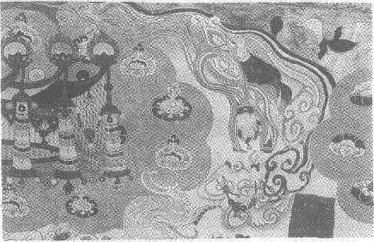 释义 | 涅槃经变图(飞天)壁画 涅槃经变图(飞天)壁画中唐(吐蕃时代)。纵95厘米,横153厘米。甘肃省敦煌县莫高窟第158窟西壁壁画。此飞天位于两菩提宝盖间,面形丰圆,身体健硕,双目注视着释迦牟尼涅槃处正在快速下降。她的披巾、衣摆婉转飘扬,与流云和手中所握的璎珞形成美丽的构图,线条富于韵律和节奏感。画面以白色为底,赋以石青、石绿等色,素洁而清新,是这个时期莫高窟壁画中飞天形象的优秀之作。 ☚ 涅槃经变图壁画 菩萨像壁画 ☛ |
