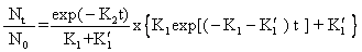 释义 | 消毒动力学 消毒动力学消毒动力学主要研究消毒处理中微生物死亡的速率及有关因素对其影响的规律。1897年,Kronig等用定量方法研究了消毒对微生物的死亡情况。1907年Madsen等与1908年Chick曾将化学杀菌实验结果用数学方程式表示微生物在消毒过程中的数量变化,并认为化学消毒类似化学单分子反应。此后,研究者不断增多,根据实验结果提出了一些数学模型,有的已在发展消毒理论和指导消毒实践上起了良好作用。 指数活存曲线 初凸型活存曲线 此类曲线表示微生物于消毒开始时死亡速率小,经一段作用时间后才呈对数死亡。Humphrey(1970) 认为其形成的原因主要是具有抗性的微生物(R)于消毒过程中先变为敏感微生物(S)然后死亡(D)。其过程图解如下: ![]() ![]() 初凸型活存曲线 (λr为由抗性微生物转变为敏感微生物的速率常数;K1为敏感微生物的死亡速率常数) 其数学方程式为: ![]() 曲线初始上凸的原因尚有: ❶每个菌体上与生命攸关的部位或“靶子”不只一个,须射中多个“靶子”才死,又称多靶说; ❷被消毒的菌液中有菌块存在; ❸杀菌因子开始对微生物仅降低其新陈代谢或细胞壁的渗透性,并不立即致死; ❹微生物所受伤害,如RNA的破坏,尚可立即恢复; ❺热处理于开始时对休眠芽胞有促进发芽作用。 初凹型活存曲线 此类曲线特点为微生物在起始死亡时的速率较快,由之曲线呈一凹陷。Komenushi (1967)认为其形成的主要原因是敏感微生物和抗性微生物既可互相转变,也均可直接死亡。消毒开始时,敏感微生物形成抗性微生物的速率(λ ![]() ![]() ![]() 初凹型活存曲线 (K1为敏感性微生物的死亡速率常数; K2为抗性微生物的死亡速率常数) 其数学方程式为: ![]() (γ ![]() ![]() 也有认为初凹型活存曲线的出现是因加热处理中微生物凝集成团,部分蛋白质和酶凝固的结果。 折线型活存曲线 此类曲线特点为微生物死亡的速率先后相差较大,形成一条折线。Prokop(1970) 等认为其形成的主要原因是菌群中含有两种抵抗力不同的微生物,抵抗力弱者先死,抵抗力强者后死,其过程图解如下: ![]() 折线型活存曲线 ![]() 其数学方程式为: ![]() (N0 ![]() ![]() 乙状活存曲线 此类曲线特点为微生物在起始和接近全部死亡时,其死亡速率均较小,因此形成一S状。Brannen(1968)认为其形成的原因是在消毒过程中微生物须经两步才死亡。第一步为可逆的一级反应,第二步为不可逆的一级反应。其过程图解如下: ![]() (B为原菌; A为经第一步可逆性作用之菌; C为经第二步不可逆性作用之菌; K1、K2与K1′为相应变化之速率常数) 其数学方程式为: ![]() 乙状活存曲线开始呈凸形,其形成的原因同初凸型曲线; 其“拖尾”现象形成的原因可能为: ❶微生物具有生理差异,例如于同一批细菌芽胞中总是约有1∶107~1∶108的芽胞具有较高的抗热性; ❷消毒过程中有部分微生物适应了新环境,产生了抗性或发生了突变; ❸消毒后期于微生物周围介质中,混有细胞渗出物和死菌,对未死的微生物有保护作用; ❹微生物中有保护得更严密者; ❹消毒后期活存微生物少,活存率测定误差大。 上述为固定杀菌因子强度,变换作用时间所常见的几种活存曲线。此外,也可根据需要,固定其他因素,找出另一因素改变过程中微生物活存变化的曲线,如固定消毒时间,找出不同杀菌因子强度的活存曲线。在实际消毒工作中,可利用由曲线或方程式计算出的D值或灭活指数来预测消毒效果,设计消毒方法,控制消毒过程。如物品含菌109个,拟用D为2min的方法处理,可预计消毒10min尚有10,000个菌活存,消毒20min才达基本无菌。若电离辐射消毒中D10(见“电离辐射消毒”条)为0.3Mrad,则照射1.5Mrad尚有10,000个菌活存,照射3.0Mrad才达基本无菌。消毒后,经微生物学检查,若未达预期效果,则可说明方法或条件发生改变,如消毒时间或杀菌因子的强度不准,或温度、湿度等有较大变化。此时应找出原因,改进方法,才能保证预期消毒效果。 ![]() 乙状活存曲线 ☚ 消毒效果生物鉴定法 芽胞的杀灭 ☛ |