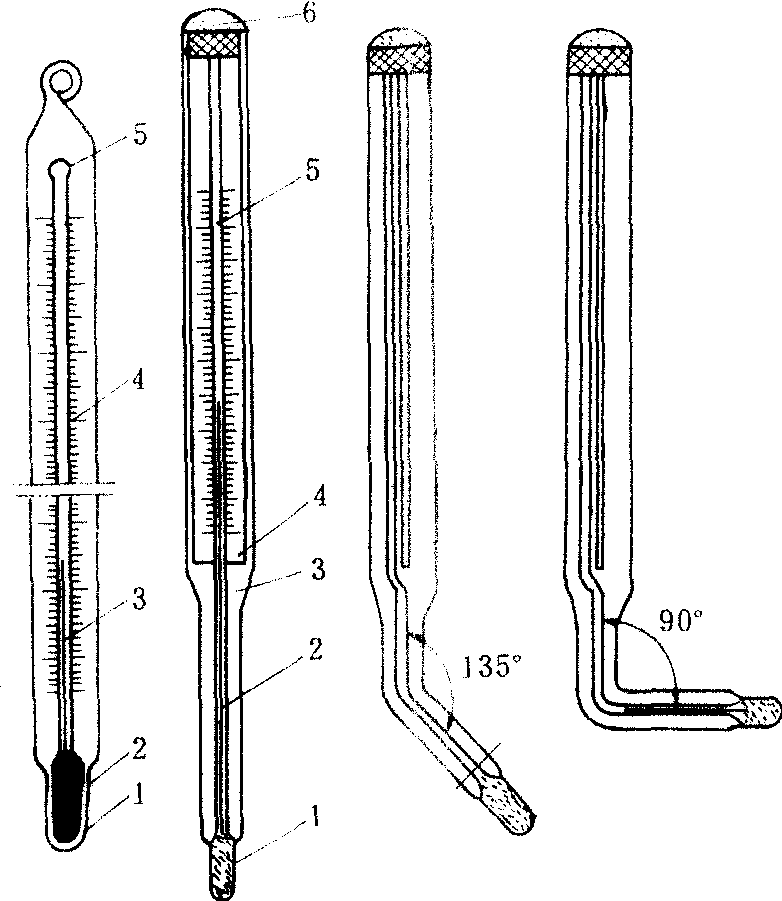 1—感温泡 2—感温液体 3—套管4—标尺 5—毛细管 6—封口