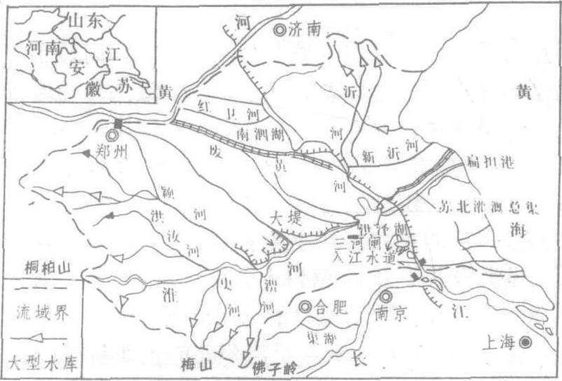 释义 | 淮河中国河流。发源于河南省桐柏山,流经河南、安徽、江苏3省,在江苏省江都市三江营入长江。2003年6月28日淮河入海水道近期工程全线通水,结束了淮河800年没有入海通道的历史。淮河入海水道长163.5km,宽750m,近期工程排洪流量2270m3/s。西起洪泽湖二河闸,东至滨海县扁担港,注入黄海。淮河干流长1000 km,总落差196 m,流域面积18.7万km2。洪河口以上为上游,长360 km,流域面积3万km2。洪河口至洪泽湖出口中渡为中游,长490 km,区间面积约13万km2。中渡至入长江水道为下游,长150 km,区间面积3万km2。淮河流域面积大于1000 km2的支流21条;大于2000 km2的支流16条;大于10000 km2的有洪汝河、沙颍河、涡河和 淮河 淮河Huaihe我国中部的大河之一。它发源于河南省与湖北省交界处的桐柏山太白顶(又称大复峰)。自西向东经流河南、安徽等省到江苏省入洪泽湖。从河源到此处,长845公里,流域面积16.4万平方公里。洪泽湖以下,河水分两路下泄,大部分通过洪泽湖南岸的三河闸南流,过高邮湖,于江都县三江营入长江;另一部分水流过洪泽湖东岸的高良涧闸,经苏北灌溉总渠,于扁担港入黄海。从河源到入江口或入海口,大约都是1 000公里左右。流域面积跨越豫、皖、苏、鲁四省,加上历史上曾属淮河支流的沂河、沭河和泗河,共有26万平方公里。若不算原属的沂、沭、泗诸河,流域面积为18.7万平方公里。淮河从源头至豫、皖交界处的洪河口为上游,长382公里。两岸山丘起伏,河床比降较大。属山溪性河道特征。淮河源头海拔1 127米,而洪河口只有28米,平均1公里河段,高度降低2.6米。由于河床坡降大,水流湍急,支流源短,常暴涨暴落。从洪河口到江苏省洪泽湖出口处的中渡为中游。其北岸为黄淮平原,南岸为江淮丘陵,大部为霍山,是长江和淮河两大水系的分水岭。沿途在安徽省凤台、怀远、五河附近,分别切过山岭形成峡山口、荆山峡、浮山峡三段峡谷,俗称“淮河小三峡”。淮河中游集中汇入了10条重要支流,北侧的有洪河、颍河、西淝河、涡河、北淝河、濉河等,它们都沿着地面向东南倾斜的平原,平行地汇入淮河。支流与干流、支流与支流之间常形成洼地或湖泊。如南岸的城西湖、城东湖、瓦埠湖、高塘湖、花家湖、女山湖,北岸的四方湖、沱湖、无井湖及颍上的丘家湖、唐垛湖、八里湖、凤台的焦岗湖等。这些湖泊大都是以往黄河洪水泛滥侵淮时带来的泥沙,使淮河干流河床淤高,各支流下游排水困难淹没造成的。中游南侧支流的长度比北侧支流短,整个水系形成一种典型的不对称状,这就是羽状水系或梳状水系。从洪泽湖出口处的中渡到三江营或扁担港为淮河的下游。这里地势低洼,水网密集,湖泊棋布。淮河水道大都是借道湖泊,不成河形,且无较大支流注入。自1194年,黄河决口夺淮,带来大量泥沙,导致淮河下游河道淤高、堵塞,河水向低地汇流,形成了密集的湖泊群。淮河的年径流总量并不算大,如蚌埠站的平均年径流总量为257亿立方米,但各年的流量相差十分悬殊。多雨的年份可达700多亿立方米,少雨的年份只有53亿立方米,两者相差13倍多。由于淮河水系南北不对称,淮北支流较长,河道坡度平缓,具有平原河流特性;淮南支流源短流急,河道坡度大,上游具有山溪性河流特性,流域内降水时间往往比较一致,暴雨期间很快汇入干流。加之中游河道弯曲多,排洪能力小,这样就使淮河经常发生水患灾害。据不完全统计,从1662年到1722年的60年中,淮河流域平均每二年一次水灾。1746—1796年的50年及1844—1881年的37年中,平均每三年一次水灾。1916—1931年的15年中有4次水灾。淮河流域2亿亩耕地,经常受灾的就有1.3亿亩。中华人民共和国成立后,淮河流域人民开展了治理、改造淮河的伟大斗争。40多年来,按照上游以蓄为主、中游以疏导和固堤为主、下游以泄洪和排涝为主的方针,先后在淮河干支流上修建了30多座大型水库和4 100多座中小型水库;在上游广大山地丘陵地区,大力开展水土保持工作;在淮河中游支流史河、淠河和长江支流杭埠河,修建了以灌溉为主的淠、史、杭大型工程,灌溉农田面积达1200万亩;在淮河下游,大力新辟入海、入江行洪水道。如从高良涧到扁担港、长170公里的苏北灌溉总渠(汛期可分洪700立方米/秒的洪水),从三河到高邮湖、长18公里、宽3公里的引洪道,从洪泽湖向北新开挖的淮沐新河,从苏北射阳湖向东北开挖的黄沙港等。此外,在扬州以东还兴建了规模巨大的江都水利枢纽工程。 淮河水系图 ☚ 拒马河 钱塘江 ☛ 淮河中国大河之一。源出河南桐柏山,东流经安徽到江苏入洪泽湖,出洪泽湖后转而向南,最后在江都的三江营注入长江,干流全长1000公里。源出山东沂蒙山区的沂河、沐河和泗水过去是淮河的支流,现经治理已分别由新沐河、新沂河入黄海,但还通过大运河和分淮入沂水道与淮河相通,故仍属淮河水系。流域面积26万平方公里,其中淮河18.7万平方公里。 淮河中国大河之一。源出河南省桐柏山,流经河南、安徽到江苏入洪泽湖。洪泽湖以下主流经高邮湖入长江,支流入黄海。全长约1000千米。 淮河 淮河淮河流域是由淮河和沂、沐、泗河组成,西起伏牛山、桐柏山,东抵黄海,南以大别山、霍山、张岭与长江流域分界,北以郑州至梁山的黄河南大堤和海河流域分界,以沂蒙山同黄河流域分界。流域面积为26万平方公里,其中淮河为18.7万平方公里,沂、沐、泗河为7.3万