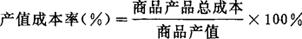释义 | 产值成本率 亦称百元产值成本,它反映了生产成本和产品产值的对比关系,一般以一定时期内商品总成本和商品产值之间的比率来表示,其计算公式如下: 在实际工作中,通常用金额来表示,即计算百元产值成本。 其计算公式如下: 以上两种表示方法虽然形式不同,而其作用是一样的。例如,产值成本率为65%,即指每百元产值的成本是65元。 产值成本率可以与上期对比,以观察成本对总产值比例的变动情况。 |