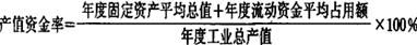 它反映每百元产值需要占用多少资金,是衡量资金利用效益的指标之一,与资金利用效益成反比。产值资金率越小,表示资金利用效益越好;反之,产值资金率越大,表示资金利用效益越差。其计算公式如下。