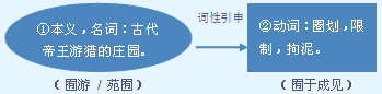 字源解说 囿,甲骨文 = (囗,篱栅)+ (卉,百草),表示种植花草蔬菜的园子;有的甲骨文 = (囗,墙垣)+ (林),表示有围墙的园子。金文 = (囗,墙垣)+ (有,捕获猎物),表示可供游猎的大林园。造字本义:古代专为帝王游猎而建的、草木茂盛禽兽繁生的庄园。篆文 承续金文字形。 附 文言版《説文解字》:囿,苑有垣也。从囗,有聲。一曰禽獸曰囿。 ,籀文囿。 附 白话版《说文解字》:囿,有矮墙围护的苑圃。字形采用“囗”作边旁,采用“有”作声旁。另一种说法认为,“囿”是养禽兽的园子。 ,这是籀文写法的“囿”字。 引申线索