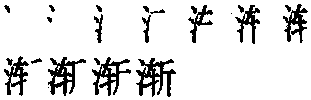 【提示】车,末笔是竖,位于字左时,横改提,且末笔是提。 *渐(漸)jiān11画 水部 〈书〉 (1) 流入: 东~于海。 (2) 浸渍;润泽: ~染|皇恩所~。 另见jiàn(183页)。