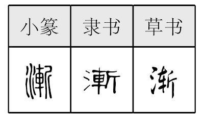 *渐(漸)jiàn11画 水部 (1) 慢慢地;逐步(发展): ~~|~变|~入佳境|循序~进。 (2) 指逐渐发展的过程: 防微杜~。 另见jiān(181页)。 渐漸jiàn古代形声字。从氵(水),斩(斬)声。本是水名,就是浙江。古代又有浸义,读阴平。如:渐染。又有流入义,也读阴平。如:东渐于海。浸染引申为慢慢地,一点一点地,现代常用。如:渐进|渐入佳境。组词如:逐渐|渐渐。 渐漸★繁◎常★常