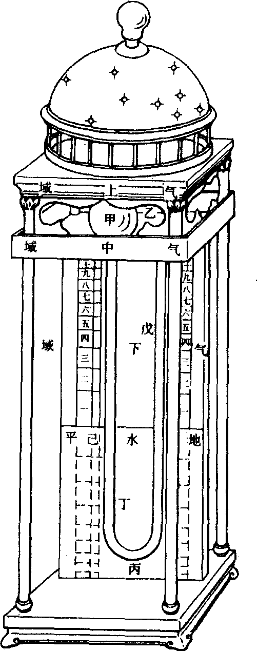 释义 | 温度测定仪器wendu ceding yiqithermometric instruments利用物体的体积、几何形状或电学特性随温度变化的原理测定温度的仪器。气象上常用的测温仪器按用途可分为普通温度表, 干湿球温度表, 地面温度表、曲管地温表、最高温度表, 最低温度表和各种温度自记仪器及电测温度计等。按其测定原理可分为玻璃液体温度表、变形温度计、电阻温度表、半导体温度表、热电偶温度表、红外测温仪等 (见温度观测)。 南怀仁传入的气温计,制于1670年左右(据《古今图书集成》) 温标 常用的温标有三种: 德国的G. D.华伦海特把水结冰的温度定为32度, 水沸点定为212度, 把32度到212度的间隔平分为180等分, 这就是华氏温标, 以“F”表示。瑞典的A. 摄尔修斯把水结冰的温度定为100度, 水沸点定为0度, 从0度到100度间分为100个等分, 以后法国J.P.克里斯廷把冰点沸度倒过来, 这就是摄氏温标,用“C”表示。英国的L.开尔文以-273℃为零度(称绝对零度),融冰温度为273度,每一度的分度与摄氏度相同, 这就是开氏温标或绝对温标, 以“K”表示。三种温标的换算关系如下: 性质 测温仪器主要有三个特性:滞后现象,敏感性和准确性,分别用滞后系数(lag coefficient)、灵敏度(sensitivity)和准确度(accuracy)来表示。 滞后系数 表征测温仪器滞后现象的物理量,其数值为当介质温度不变时,温度表的示值与介质温度之间的差值降至原差值的1/e (e为自然对数的底)时所需要的时间,单位是秒。测温仪器与被测介质间的热量交换需要经过一段时间才能达到,这就是测温仪器的滞后现象或称热惯性、热滞现象。 测温元件和被测介质之间在单位时间内所交换的热量与两者的温差成正比。因此温度表的感温速度可用下式表示: 由温度表滞后所引起的示值与实际温度之间的差值称为滞差。在实际工作中应根据测温的要求和被测介质的性质,选择适宜滞后系数的温度表。一般测定气温的温度表要求滞后系数为100~200秒。 灵敏度 表征温度表对温度变化量反应的敏感程度的物理量,其数值为:当温度改变1℃时,玻璃液体温度表内液柱长度的变化量,也就是单位刻度的长度。灵敏度高的表刻度、读数越精确,或说精确度、分辨率越高。 设0℃时表内液体(水银或酒精等)的体积为V0,当温度改变△t℃时,管中液柱长度变化(伸长或缩短)为△L,温度表的灵敏度为: 电阻温度表的灵敏度可用温度改变1℃的电阻值的变化表示。用电表指示的测温仪器的灵敏度可以用温度改变1℃时电表指针偏转角度或者弧度大小表示。 准确度 表征仪器测值对真实数值接近程度的物理量。测值与真值之差,即为误差。实际工作中常用误差值的大小来衡量准确度,误差越小,准确度越高。确定温度仪器的误差方法(即温度检定方法)是将温度表放入恒温槽内,用一支标准温度表指示槽内的温度值,温度表的指示值与标准温度表示值之差的多次平均就作为温度表的误差,即表示温度表的准确度。因此,仪器的准确度实际上与检定条件(检定设备、标准仪器等)的精密度有关。检定条件的精度级别必须高于被检仪器的级别。感温元件的老化将引起性能的改变或使零点发生漂移,仪器准确度会改变,因而测温仪器应定期进行检定。 |