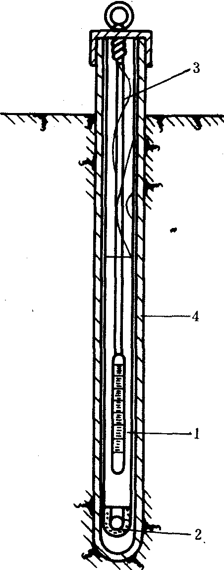 图5 直管地温表 1.温度表;2. 套管底部;3. 三节棒;4. 套管 (林 晔)
