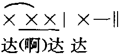 音乐知识与其他学科知识一样,也是有内在联系的。教师在教授新知识时如注意新旧知识的衔接,学生便很容易掌握。❶讲解附点音符时,先复习基本节奏。四分附点音符即由第一拍和第二拍的前半拍连接而成,例× ××|×—⟧,读节奏时可将第二拍的前半拍(或附点)读成“啊”字作为过渡,即。八分附点音符是将四分附点音符的节奏快一倍,×·×即× ×××。❷讲解切分音时也同样,× ×× 即××××,先读达达达达再读达达啊达。以此类推。讲音程时先复习音阶,讲3/4拍时先复习2/4拍等等。