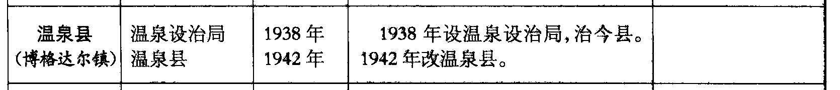 温泉县(博格达尔镇)温泉设治局温泉县1938年1942年1938年设温泉设治局,治今县。1942年改温泉县。