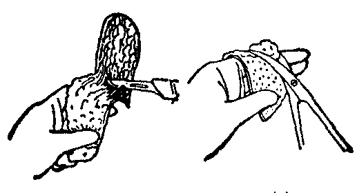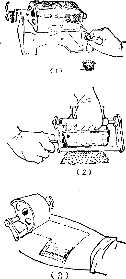 释义 | 游离皮肤移植术 游离皮肤移植术游离皮肤移植术又称游离植皮术,通常多简称为皮片移植术。包括供皮区的选择,取皮,供皮区的处置,受皮创面的准备,皮片的移植和固定,以及术后处置等步骤。供皮区的选择 应按受皮部位对皮肤色泽、质地、厚度的要求,及其面积的大小等选定。此外,还须注意供皮区毳毛的分布,手术切取的难易,以及取皮后的创痕是否隐蔽等因素。多部位需分期进行皮片移植术治疗时,并应对各次手术的供皮区作全面安排,综合考虑。供皮区与受皮区越相邻近,则皮肤的色泽、质地、厚度等越相近似,但此原则在具体运用中还须受其他条件制约而不能顾此失彼。大腿内侧皮面宽阔平坦,毳毛不显著,操作方便,部位亦较隐蔽,故为一般首选供皮部位,适于身体各部大、小面积植皮之需。惟术后常不便早期离床活动,且如切皮面积较大或位置过低时,妇女穿着短裙仍难免外露,是其缺点。胸、背、腹壁、臀等部位,亦均可供切取大面积皮片。胸壁皮片,色泽较好,适用于面部大面积植皮。背、腹壁、臀等部位皮肤,色泽虽较深暗,但真皮层较厚,用于四肢、躯干,特别是以恢复功能为主要目的时,可以获得较稳定的疗效。上述各部位都可使用切皮机操作,也都较隐蔽。受皮区处于外露部位者,须注意毳毛的分布。耳后或锁骨上窝部的全厚皮片,肤色与颜面近似,外观较好。内踝前下方足跖非持重区的全厚皮片,质地和组织结构与足跖持重区和手掌相近,移植后较耐磨压,功能效果好。但这些部位可以切取的面积有限。头皮皮肤最厚,且血运充沛,创面愈合快,同一部位可供反复多次切取,称为“二次收割”,抢救大面积深度烧伤供皮区极受限制时常用之。躯干、下肢各处浅度烧伤创面愈合后,其平薄、柔韧、松动的瘢痕上皮,当供皮区极度缺乏时,也可切取供后期修复植皮之用。 图1 点状皮片切取法 全厚皮片的切取法,因切取的全厚皮片的大小和形状须与受皮创面基本一致,以保持移植后原来的皮肤张力不变,始易于成活,故取皮前,应先用布片或薄塑料膜剪制受皮创面的样型,然后依样切取。有两种切取法,第一种是顺真皮与皮下脂肪间的自然解剖层次直接切剥取下,如见创面基底呈现白色纤维结构的网格状,格中皮下脂肪组织隐约可见时,即为切取的层次恰当。此法切取较快,出血亦较少。第二种是先连带皮下脂肪一起切下,再用剪刀将脂肪逐步剔除。此法较费时间,对皮片创伤也较大(图2)。 图2 全厚皮片切取法连带皮下脂肪切下,再剔除脂肪。 表层及中厚皮片的切取法,为术者与助手各持木板一块,按压于皮面并向相反的方向牵开,则两块木板间的皮肤即可形成一较实韧平坦而稳定的皮面。用刀长刃薄而锋利的切皮刀或截肢刀,就皮面作往复拉锯样行进动作就可取得皮片。刀面与取皮面所成角度的大小,决定所取皮片的厚度(图3)。此法取皮所需设备简单,如用皮面积不大,也可用安全剃刀片切取。 图3 表层及中厚皮片的手工切取法 手工取得的皮片,上下边缘多不整齐而呈锯齿状,宽度也往往不足,厚度也难均匀一致,影响植皮效果。这种取皮方法还受解剖部位的限制,如在松软而滑动的腹壁操作即感困难。且此种取皮法由于所取皮片较窄,边缘不齐,以致不能充分利用供皮区可以提供的可用面积。 机械切取皮片的方法,是借助切皮的专用器械,按标定的厚度数值切取大面积整张表层或中厚皮片的方法。皮片的厚度以0.01mm为计算单位。皮肤全层的厚度,因年龄、性别、部位等的不同而有差异,故各种皮片厚度的确切数值也不固定。一般成人的参考数值是: 表层皮片为0.2~0.25mm,薄的中厚皮片为0.3~0.45mm,厚的中厚皮片为0.55~0.65mm。切皮器械中,有构造较简单的滚轴式切皮刀,和较复杂的各式切皮机。 滚轴式切皮刀,又称Humby切皮刀,是具有滑动的滚轴和附有调节切皮厚度装置的较简易的切皮器械。调节制定厚度的旋钮,每格代表0.25mm的切皮厚度(图4)。切皮的操作,与使用一般手工切取时的切皮刀相仿,但较易掌握,可按预定数值取得厚薄均匀的皮片。但此法仍有切取的皮片上下边缘不齐,宽度往往不足,受解剖部位限制,以及不能充分利用供皮区的有效使用面积等缺点。 图4 滚轴式切皮刀 切皮机,首先由Padgett和Hood于1939年共同研制成功,即鼓式切皮机,也称Padgett-Hood切皮机。这一创造性的设计,较好地克服了手工切皮法的缺点,开拓了切皮机械化的途径。其后,不同类型的切皮机相继出现,如吸引式、电动式、风动式切皮机等,但直到目前仍以鼓式切皮机的应用最为普遍。 鼓式切皮机的构造,由机座和机身两个主要部件组成。机座为载负机身的支架,并可固定机身鼓面。机身由鼓面、手柄、横轴、刀架、刻度盘等组成(图5)。切皮机有大小两型,大型鼓面长20cm、宽10cm,小型鼓面长20cm、宽8cm。使用时,将刀片固定在刀架上,借涂布在鼓面和供皮区皮面上的胶液将皮肤粘起,乘势落刀即可开始切割。切下的皮片,由刀刃与鼓面间可以调节的缝隙中穿出,真皮面朝外粘着在鼓面上。缝隙的宽度即所取皮片的厚度,可经由刻度盘控制。刻度盘上的每格代表0.01 mm,但实际厚度还受切取者的手法,刀片的利钝,切皮机的灵敏度等因素的影响而有所出入,不完全决定于刻度盘的标定数值,故切皮开始后,尚须观察所取皮片的实际厚度随时调整。切皮的操作,大致可以分为备鼓,涂胶,粘皮,起刀,切皮,割断
