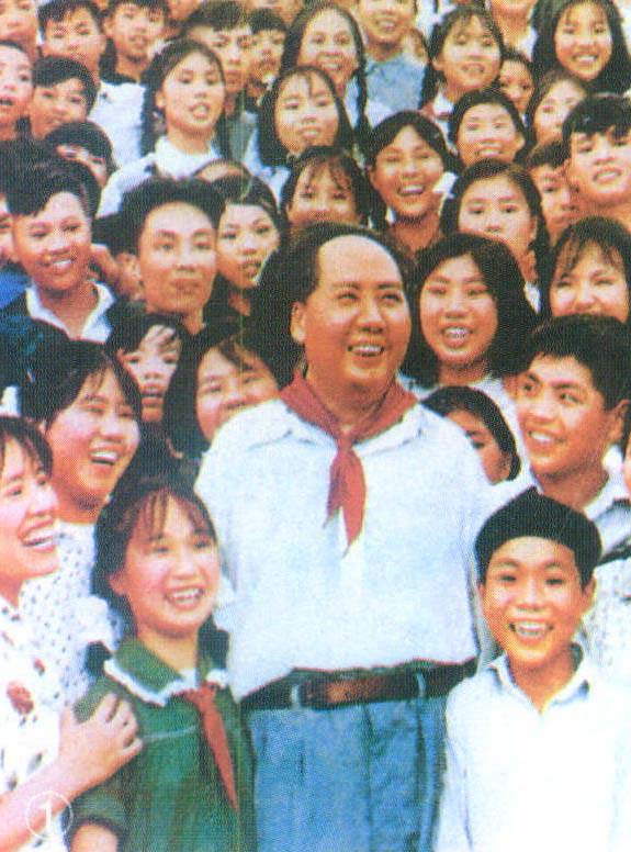 ①1959年6月毛泽东同志和韶山学校师生在一起。