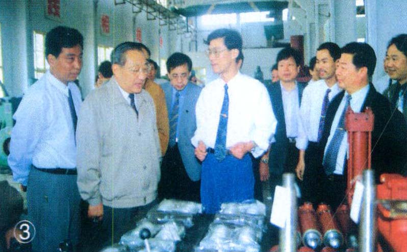 ③1996年5月李岚清副总理(左二)在省委副书记郑培民(右二)陪同下视察湘潭机电职业中专。