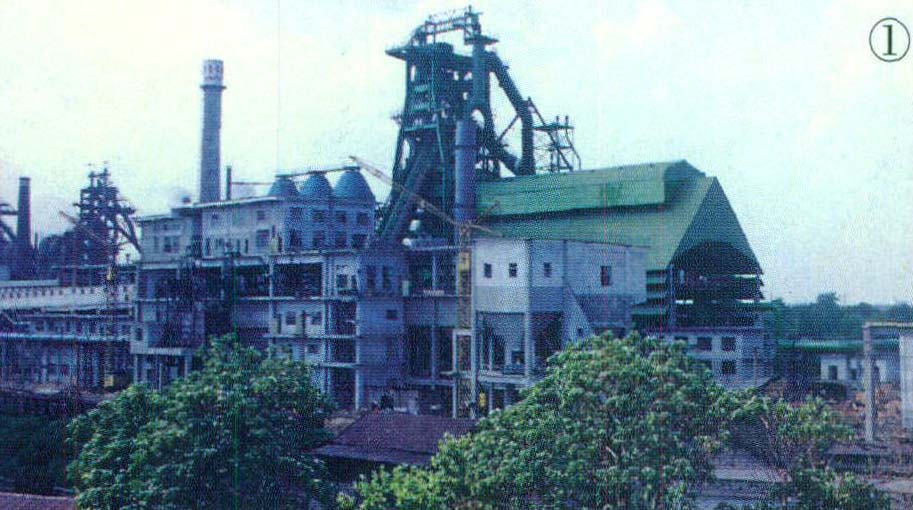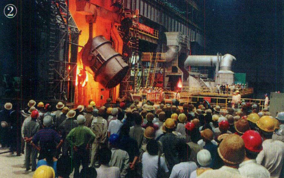 ②新建成投产的一号转炉。