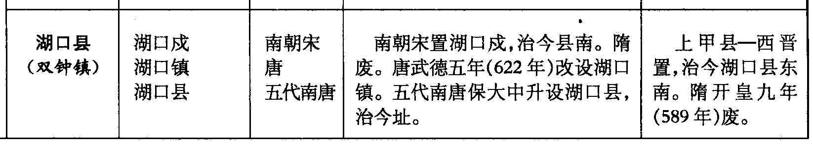 湖口县(双钟镇)湖口戍湖口镇湖口县南朝宋唐五代南唐南朝宋置湖口戍,治今县南。隋废。唐武德五年(622年)改设湖口镇。五代南唐保大中升设湖口县,治今址。上甲县—西晋置,治今湖口县东南。隋开皇九年(589年)废。
