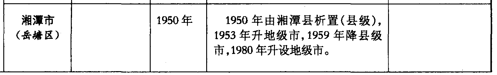 湘潭市(岳塘区)1950年1950年由湘潭县析置(县级),1953年升地级市,1959年降县级市,1980年升设地级市。