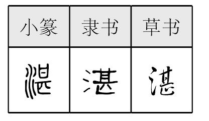 形声,从水,甚声,本义读chén,沉没;又读zhàn,引申为深、清澈等。 【辨析】 湛/深/潭/浚 见366页“深”。 |