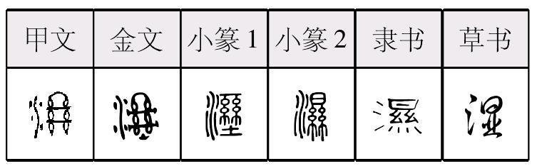 湿濕;溼shī(12画) *湿(濕)〔溼〕shī12画 水部 沾水的;含水分多的(与“干”相对): ~润|潮~|~漉漉|泪水~透了衣裳。 湿濕溼shī甲骨文作从水从丝上两横或三横(继或断),西周金文基本同,表示丝沾水潮湿。春秋初石鼓文及小篆右下增土旁,表示低下意。隶楷省丝下交叉形,作溼。是低下潮湿义。濕是小篆以来的形声字。从氵(水),㬎(日中看丝,《说文》说战国文字以为显(顯)字。又许多口之状,读jìn。又作茧()字。徐铉读è)声。最初以为古代水名,读tà(后来又作漯。tà水,在山东。又读luò,今漯河市,在河南省)。段玉裁《注》说汉隶以濕为燥溼字。中古到现在说溼是沾水,含水多。如:地很湿|手湿了。元明清简体略近湿,右下从亚。现群众少一横,从业,右旁从显,作湿,较简便。现以湿为规范字。见《总表》。溼为异体字,见《异体字表》。 湿濕★繁◎次;溼★异◎常★常shī溼,表意,甲骨文从水从 ![]() 【辨析】 “濕”又读tà,古水名,与“溼”不是等义异体字。 【构词】 湿淋淋(溼淋淋∕濕淋淋)∣湿润(溼潤∕濕潤)∣浸湿(浸溼∕浸濕) |
