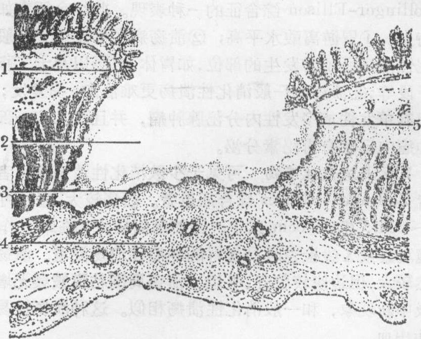 释义 | 溃疡kuìyáng皮肤或黏膜组织溃烂、缺损 各科的病 各科的病内科病名:疳 痞 痃 疸 ☚ 各种病 神经系病名 ☛ 破损 破损缺(~碗;~口) 豁(~口) 穿决 破毁 破残 破缺 缺损 损坏 亏损 亏蚀 阙蚀 另见:破坏2 破烂 残破 完好 ☚ 毁坏2 倾毁 ☛ 溃疡症状名。出《周礼·天官》: “疡医下士八人,掌肿疡、溃疡……”中医习惯上把自溃或切开的疮面称为溃疡,不同于现代医学所说缺乏愈合倾向的损害。多属虚证。宜服调补气血、醒脾健胃之剂,如十全大补汤、人参养荣汤等; 外用各类去腐生肌散(膏)。如溃后仍焮肿而痛者,为热毒未尽,应以清热解毒为主。证治见痈、疽、疮疡各条。 溃疡ulcer动物皮肤或黏膜局限性经久不愈合的缺损。常继发于坏死、坏疽、组织脱落后伴有慢性感染的创面。其病损至少深及真皮层或黏膜全层。如仅为上皮浅表缺损伴有渗出或感染,则称为糜烂。溃疡的特点是愈合迟缓,上皮和瘢痕形成不良。引起溃疡的原因有血液、淋巴循环和物质代谢的紊乱;神经损伤;某些传染病;感染和炎症的刺激以及异物、机械性损伤、分泌物或排泄物的刺激等。临床上常见有:单纯性溃疡、炎症性溃疡、坏死性溃疡、蕈状溃疡、神经营养性溃疡和胼胝性溃疡。宜积极治疗原发病,消除病因。不用刺激性药物。分泌物多用湿敷;分泌物少,溃疡面清洁后用凡士林纱布覆盖。肉芽高出体表应剪平。久治不愈的可手术切除和植皮。 溃疡证名。见《外科理例》。指疮疡的后期,毒邪渐去,正气也衰的阶段。炎症已经局限。局部化脓性变即将破溃或已破溃者。《外科发挥》: “溃疡,谓疮疡已出脓者。”实际上,凡疮疡与外界相通者,均谓之溃疡。 溃疡 溃疡kuiyang皮肤或粘膜局限性不易愈合的病理性缺损。多由局部损伤、感染或局部血液循环、代谢及营养障碍等引起。其组织学特点为皮肤或粘膜上皮及其下组织不同深度的坏死,底部常有炎症反应。常见溃疡易发部位为口腔、胃肠等消化道粘膜、泌尿生殖道粘膜、鼻喉等呼吸道粘膜及皮肤,尤其下肢皮肤。溃疡可呈急性或慢性过程,如能消除病因或治疗原发病,急性溃疡多可治愈,慢性溃疡治疗困难,且有癌变危险,更应针对病因,积极治疗。 ☚ 充血 再生 ☛ 溃疡ulcer皮肤粘膜组织坏死脱落后的缺损叫溃疡。原因很多,其中最多见的为各种感染性炎症、外伤、化学损伤后、冷热因子损伤后、血液循环障碍、营养不良、神经功能障碍等。主要发生在皮肤与空腔脏器的粘膜处,如皮肤、口腔粘膜、鼻咽及眼结膜、呼吸道粘膜、消化管道等处。溃疡大小不一,多少不等,深浅不同。对人体危害不同。应针对不同原因进行治疗。消化性溃疡应服用抗炎、制酸类药物;口腔溃疡注意口腔卫生,适当含清洁剂;小腿静脉曲张溃疡,重点治疗静脉曲张;截瘫病人出现的褥疮要加强护理等。 溃疡病症名。指一切溃破的疮面。多因肿疡切开排脓,或自溃脓出后形成。凡疡面脓液稠厚黄白,色鲜不臭,腐肉易脱,新肉易生,色泽红活鲜润,疮口易敛,知觉正常的属阳证;疡面脓液清稀,或时流血水,腐肉难脱,新肉不生,色泽灰暗,疮口难敛,不知痛痒的属阴证。 溃疡脓肿穿破皮肤、粘膜或炎症组织坏死脱落而造成皮肤、粘膜表面的组织缺损。常见有下肢大隐静脉曲张引起的小腿皮肤溃疡,发生在胃与十二指肠粘膜的胃与十二指肠溃疡,晚期恶性肿瘤坏死及破溃后形成的恶性溃疡等。 溃疡kuì yáng《本草纲目》主治第4卷桑柴火(4)。病证名。一切疮疡已溃或切开后,尤其是久溃不敛者,均称为溃疡。其证多虚。见《外科理例》。《外科发挥》:“溃疡,谓疮疡已出脓者。”治以补气血为主,方用八珍汤、十全大补汤之类。如脓溃后,局部焮肿大痛者,为内热未除,仍以清热解毒为主。西医所称溃疡,系由组织坏死而产生的皮肤或黏膜缺损,愈合较慢,与本证不尽相同。 溃疡ulcer是皮肤或粘膜局部组织发炎、坏死、脱落后的组织缺损。下肢皮肤及胃或十二指肠粘膜为好发部位,如未痊愈则往往形成慢性溃疡。 溃疡kuìyánɡ症名。见《外科理例》。《外科发挥》: “溃疡, 谓疮疡已出脓者。” 一切疮疡自溃或切开后, 尤其是久溃不敛者, 均称为溃疡。其证多虚。治以补气血为主, 方用八珍汤、十全大补汤之类。如脓溃后, 局部焮肿大痛者, 为内热未除, 仍以清热解毒为主。西医所称溃疡, 系由组织坏死而产生的皮肤或黏膜缺损, 愈合较慢, 与本症不尽相同。 溃疡 溃疡溃疡是发生在组织表面的一种局限性较深在的病理性缺损性病变。缺损是由多种原因引起的表面组织坏死,坏死物质腐离或脱落形成的。溃疡多发生于皮肤及粘膜组织,少数也可发生于血管内膜、浆膜及关节滑膜等表面。虽然溃疡局部几乎总是伴有炎症,但并不是每一种溃疡都是由于炎症性破坏引起的,许多溃疡局部的炎症是继发的。如胃或十二指肠的消化性溃疡,其原发损害是胃或十二指肠粘膜的自身消化坏死,炎症病变是继发的。少数溃疡局部也可无明显的炎症现象,如动脉粥样硬化斑块继发的溃疡。溃疡常见于以下部位: 慢性消化性溃疡 1.溃疡贲门缘; 2.溃疡; 3.溃疡底的坏死渗出层;4.溃疡底的瘢痕组织; 5.溃疡幽门缘 胃或十二指肠消化性溃疡可继发胃或十二指肠的狭窄、穿孔以及出血等严重并发症。此外,少数胃溃疡病例可以癌变。癌变率各家报告不一,较老的文献大约为5%,近代一般认为癌变率