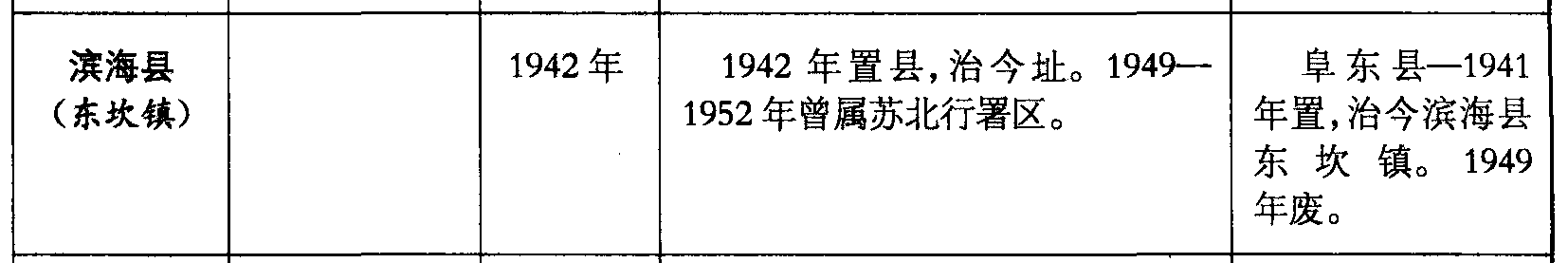 滨海县(东坎镇)1942年1942年置县,治今址。1949—1952年曾属苏北行署区。阜东县—1941年置,治今滨海县东 坎 镇。1949年废。