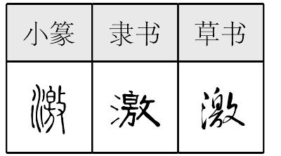 ❹ 风飑电激 激 金文; 篆jī[氵(水,意符)+敫(聲符)→激(《説文》:“激,水礙衺(xié)疾波也。從水,敫聲。一曰:半遮也。”水流受阻碰擊岀向上的水花。引申爲使之奮起〈激發〉,引起情感的衝動〈激情〉,強烈反應〈激昂〉。)] 蔣光慈《我要回到上海去》:“聽説上海大學被洋兵占了去,聽説我的學生被稱爲過激。” 激jī(16画)