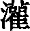 ❸ 百川灌河|抱瓮灌园|醍醐灌顶 灌 金文; 篆guàn[氵(水,意符)+雚(聲符)→灌(《説文》:“灌,水岀廬江雩婁。北入淮。從水。雚聲。”灌,水名。後用爲〈澆灌、灌溉〉。灌又引申爲飲〈灌酒〉。借聲稱矮小無主幹的樹木爲〈灌木〉。)] 《詩經·大雅·皇矣》:“修之平之,其灌其梸。”修平枝葉,矮樹成列。) 灌 guàn(20画)