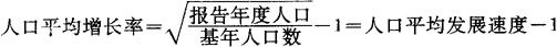 指在两年以上的时期内,平均每年人口增长的速率或速度。其计算公式为: