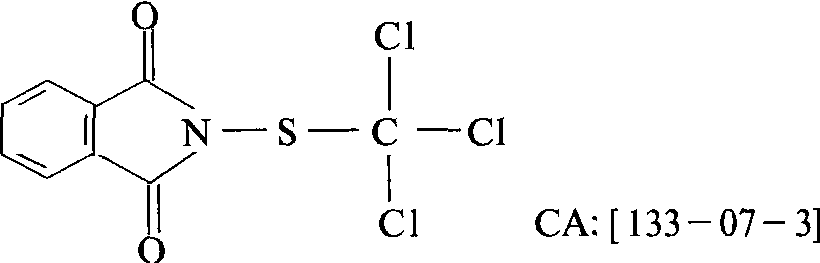 释义 | 灭菌丹folpet一种广谱保护性的有机硫杀菌剂。商品名Thiophal、Phaltan、费尔顿。化学结构式: 性能 纯品为白色晶体,熔点180℃ 。20℃时蒸气压<133. 32×10-5帕。室温下在水中溶解度仅1毫克/升,微溶于有机溶剂。干燥时稳定,遇水缓慢水解,遇高温或在碱性条件下则迅速水解。本品无腐蚀性,但其水解产物有腐蚀性。大鼠口服10000毫克/千克没有死亡; 大白兔急性经皮LD50>22600毫克/千克。工业品按10000毫克/千克饲喂大白鼠17个月,未见病变或肿瘤;用含100~ 1000毫克/千克药量食物喂大鼠,连续三代对繁殖无不良影响。对鱼有毒。对蜜蜂无毒。对粘膜有刺激性。本品对白粉菌(Erysiphe spp.),黑星病菌(Venturia spp. ),小丛壳菌(Glomerella spp.),盘长孢菌(Gloeosporium spp.),单丝壳菌(Sphaerotheca spp.),叉丝单囊壳菌(Podos-phaera spp.),霜霉菌(Peronospora spp.),交链孢菌(Alternaria spp.),疫霉菌(Phytophthora spp.),葡萄孢菌(Botrytis spp.)等都有活性. 应用 主要作喷雾使用。按0.1%左右浓度药液喷雾,防治瓜类、蔬菜、葡萄霜霉病、白粉病;马铃薯、番茄早疫病、晚疫病;苹果炭疽病、黑星病、白粉病;草莓等的灰霉病等。0.2%左右浓度药液,防治小麦白粉病、锈病、赤霉病和花生叶斑病、烟草炭疽病、小稻纹枯病等。用药剂量偏大时,梨、甜樱桃、桃和葡萄的一些品种易生药害。本品除不宜与强碱性药剂和油剂混用外,可与多数常用农药混用。已有若干复配制剂问世,如Trimifol(与铜盐复配),Mycodifol(与敌菌丹复配)等。 灭菌丹folpet三氯甲硫基类杀菌剂。化学名称:N-三氯甲硫基邻苯二甲酰亚胺。化学结构式如下。原药为白色结晶,难溶于水,微溶于有机溶剂,在干燥条件下稳定,碱性介质中分解。室温下遇水则缓慢水解而失效,并对金属有腐蚀作用。广谱性保护杀菌剂,可防治禾谷类作物、果树、蔬菜、茶树等多种作物病害,一般在发病前喷洒。还可用于蚕体防治蚕僵病。对人畜毒性低、大鼠口服急性LD50≥10 000mg/kg,对黏膜有轻微刺激作用。 灭菌丹phaltam |