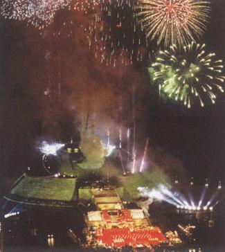 在大力改善人民生活水平,全面建设小康社会的过程中,中国政府继续坚持不懈地采取有力措施帮助贫困人口脱贫;同时高度重视抗灾救灾和救济工作,切实解决受灾群众的生存问题;对城市中重病、重残和无经济收入等低保家庭继续给予重点救助。 中国人民健康总体水平已超过中等收入国家的平均水平,处于发展中国家前列。据2003~2007年中国卫生发展简报,中国人的平均期望寿命已从2000年的71.8岁提高到73.0岁;孕产妇死亡率从新中国成立前的1500/10万下降到2007年的36.6/10万;婴儿死亡率由新中国成立前的200‰下降到2007年的10.7‰。 国家公共卫生体系进一步加强。 据2005年公布的统计数字显示,中国人平均寿命为74.09岁,总人口出生率为1.72个子女/妇女。  中华世纪坛上空的焰火 |
