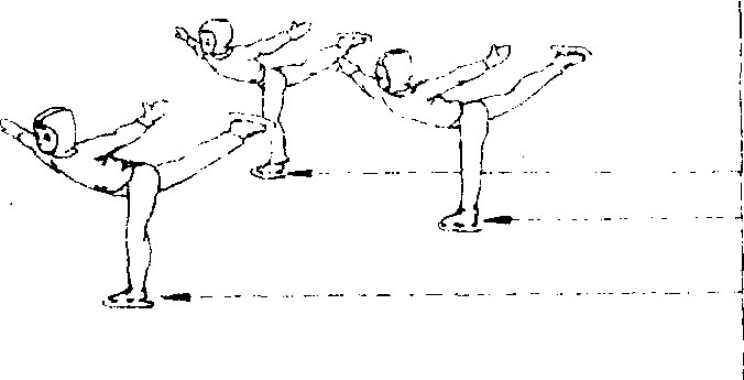 游戏方法 将学生分成人数相等的2—4组。预备时,各组第一个同学站在起点线后,左右间隔2米,上体前倾成准备滑跑姿势。教师发出开始口令后,迅速蹬冰滑跑至滑行线,开始单足支撑,两臂侧平举,俯身,腿后举成燕式平衡姿势向前滑行。最后以姿势保持时间长,滑行距离最远为胜。各组第一个同学做完后,依次进行。