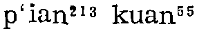 (名)旧时*摆片设赌场招赌的人: ~摆片招揽的赌角以商人、大地主、烟贩、袍哥为多。(龙82.6.17)片,另见pian3。