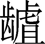 也作“齖”。语倔强;唇不覆齿。例:这人说话~,言语头子惨覈,说话难听很!❍ 他说话~,人又恶,是个惹不挈的牙刻!《太平御览》三六八引《通俗文》:“唇不覆齿谓之齖。”《正字通》:“齖,一说本作牙。”