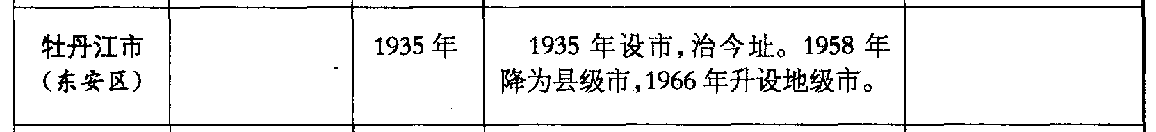牡丹江市(东安区)1935年1935年设市,治今址。1958年降为县级市,1966年升设地级市。