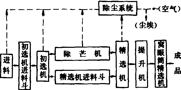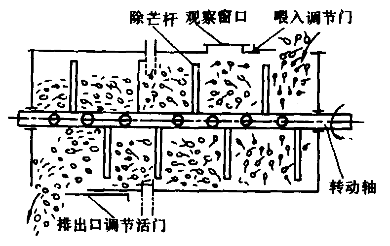 牧草种子加工forage grass seed processing将牧草种子进行清选、分级以及其他以提高播种质量和便于贮存、流通为目的的各种处理过程。畜牧业发达的国家随着人工草场种植饲草的推广, 十分重视对牧草种子加工。其加工技术是与粮食作物种子加工同时发展起来的(见谷物种子加工), 现已有专门的牧草种子加工厂。中国在20世纪80年代初分别从丹麦和新西兰引进了生产率为0.75~1吨/时和0.3吨/时的牧草种子加工成套设备,1987年也结合国情自行设计开发了这类产品。 常用牧草有100多种,主要分为豆科和禾本科两大类。豆科牧草种子无须特殊处理,在一般种子加工线上选换合适的工作部件(筛片、窝眼筒等)即可加工。禾本科牧草种子多数重量轻,带有芒刺和绒毛,尺寸长短不一,且经常缠绕成团。因此,在基本清选之前,必须采取一定的预处理措施。牧草种子加工成套设备工艺流程(以丹麦西勃里亚公司产品为例)如下: 喂料斗→初清机→除芒机→风筛式精选机→窝眼筒式精选机→重力式分选机。它配有高效旋风除尘器集中除尘。为使单机联接成线,并适应不同种子的加工和流程变化,成套设备中还有多台种子提升机和各种联接管路,筛片和窝眼筒备件多达100多种规格。新西兰设计的黑燕麦工艺流程设备是风筛式清选机→8.5毫米窝眼筒→筛网式清选机→4毫米窝眼筒→包装料箱;为白三叶草和红三叶草设计的加工工艺流程和设备是:风筛式清选机→1.75毫米(红三叶草为2.5毫米)窝眼筒→抛光机→重力式清选机→包装料箱。中国1987年研制的小型牧草种子加工成套设备,包括4台主机和配套的提升、除尘等装置,总安装面积10×12米2,使用8台电动机,总功率为18.72千瓦(图1)。牧草种子加工中最明显的特点是采用了清除种子芒毛的装置(除芒机),它的主体工作部件是一个内装转轴的圆筒,转轴上装有打杆、翼板或条刷,种子从圆筒一端的顶部喂入,被上述工作部件打击并沿圆筒内壁搓擦,使芒毛断开。筒身有封闭式和钢丝网式两种,后者同时还起分离芒毛的作用。加工过的种子从圆筒另一端排出(图2),出口处常有吸尘管道。为了改变去芒的搓擦强度,物料流量、刷子与筒壁之间的间隙是可调整的。对于长有卷曲或钩状附带物,容易缠结在一起的牧草种子,采用小倾角的旋转圆筒,筒内表面覆盖一圈细小孔径(Φ1.5mm)的筛板,使钩芒穿挂在筛板的孔眼中,可以获得满意的加工效果。对于皮壳太多,又非常轻的纤毛蒺藜草,须采用特殊设计的风筛式清选机。摩擦选和磁选也是常用于牧草种子加工。对牧草种子进行包衣和丸粒化,能加大细小种子的粒径和重量,提高多毛刺种子的光滑度,改善苗期生长条件,促进播种时的流动性和着地时的稳定性。1941年美国缅因州开始在豆科牧草种子的包衣中接种根瘤菌,1980年中国也在飞机播种中应用了这项技术,收到落种均匀、出苗齐壮、结瘤性好和幼苗健壮的效果。