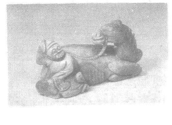 释义 | 牧马玉镇 牧马玉镇元。高5厘米,长12厘米。北京故宫博物院藏。“镇”即镇尺,镇纸压物用具,用玉石、铜、铁制成,肖生物形。此镇玉料为青灰色,以圆雕手法琢一人一马。马呈卧伏状,回首嘶鸣。马身旁坐一人,头戴尖帽,身穿宽袖长袍,高鼻深目,络腮胡须,面含快乐的笑意。从其面目看是少数民族的形象,其坐姿及表情显示出开朗的性格,与马的雄健及活力相呼应。琢玉风格粗犷而豪放。 ☚ 龙钮玉押 双人耳礼乐玉杯 ☛ |