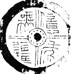 边轮内以双线十字界格分为四区,正中有中心环和圆乳以及联珠。小篆。文‘亿年无疆’四字。一字一区。