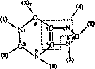 实验和理论计算都证明,如果则两者比放射性时相曲线的交叉点适为B的高峰。但这一规律只适用于无明显代谢旁路的体系。 产物标记部位的分析 如果用化学降解的方法将产物各个原子或基团分开,或用核磁共振分析技术,可以发现一定部位标记的前身物,其标记原子在产物分子中的分布有一定的位置。这种定位分布可为前身物-产物的关系提供进一步证据。若某化合物中的标记原子要经过分解、转入其他分子,最后才有一部分进入某一产物,则不仅参入率低,而且标记原子在产物中的分布也常常比较杂乱,没有特殊的定位。只有较直接的前身物才有明显的定位分布规律。较典型的实例是关于嘌呤核上各原子来源的研究。实验先以不同部位定位标记的前身物参入嘌呤,再用化学方法将产物尿酸(或次黄嘌呤)降解,测定其中各原子的相对参入量。结果发现,甘氨酸的羧基碳主要参入C4,甲基碳主要参入C5,氨基氮则主要参入N7;C6主要来自HCO-2; C2和C3主要来自“一碳单位”; N1主要来自门冬氨酸;N3及N9则主要来自谷氨酰胺的酰胺氮 (见图3)。