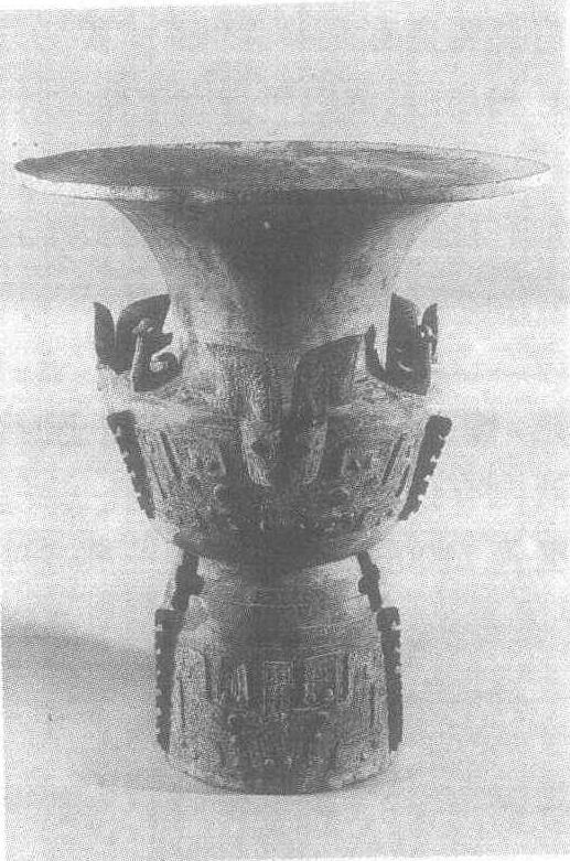 释义 | 牺首饕餮纹铜尊 牺首饕餮纹铜尊商。盛酒器。通高73.2厘米,口径61厘米。1966年湖南省华容县出土。上海博物馆藏。此尊大口呈喇叭形,内沿较平,高颈,折肩,折腹,高圈足。肩部立有三鸟。肩与腹间置三个立体的兽首。腹部和圈足上均有三条扉棱,它们之间尚有三个“十”字形镂孔。此器通体以云雷纹为地,饰有三个饕餮纹。这样大型的尊,在我国古代青铜器中实属少见。 ☚ ">“ 卉纹铜方钺 ☛ 牺首饕餮纹铜尊 牺首饕餮纹铜尊商。盛酒器。通高56.2厘米,口径52.5厘米。1971年湖南省岳南县费家河出土。湖南省博物馆藏。此尊大口,折肩,折腹,高圈足。圈足下置三矮平足。腹部和圈足上均有扉棱三道,并在相接处尚有三个方形镂孔。此器除颈部有三周弦纹外,通体均以云雷纹为地饰饕餮纹。 ☚ 铜器 饕餮纹提梁铜卣 ☛ |