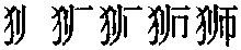 狮獅shī(9画) *狮(獅)shī9画 犬部 狮子,哺乳动物,身体长约三米,毛黄褐色。四肢强壮,有钩爪,掌部有肉块,尾巴细长,末端有毛丛。雄狮的颈部有长鬣。以羚羊、斑马等动物为食。产于非洲和亚洲西部。 狮獅shī汉代班固《汉书》作师。用于师子。译音词。中古加犭(犬)旁作狮,从犭(犬),师声。猛兽名。毛黄褐色,雄的脖子上有长毛,生活在山林里,捕食其他动物。多产于非洲及印度西北部。《广韵》又说是狗生两个子中的一个。 狮獅★繁◎常★常shī獅,形声,从犬,師声,猛兽名。《简化字表》类推简作“狮”。 |