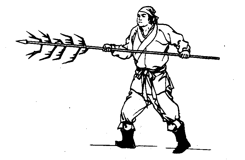 ☚ 扁担 混天戳 ☛ 狼筅 狼筅器械套路,属虎尊拳。全套28式。主要动作有:中门震筅、回马捅筅、连环劈筅等。方法有:绞、捅、扫、劈、震、云、拨、挑、架等。狼筅原取材于民用竹筅,后加上枪头成为兵器;全长7尺至1丈,是虎尊拳派中的器械之一。 ☚ 少林羊角拐 九齿迎风镗 ☛ 狼筅六势/中平势/拗步退势/闸下势/钩开势/架上势/骑龙势 ☚ 翻刺 狼筅六势 ☛ 狼筅 狼筅古代稀有兵器的一种。长一丈五尺,重七斤,用铁、竹二种材料制成。其附枝最长一尺八寸,最短八寸,兵器首部削尖如枪头,所以又叫长枪。这种兵器具有刺、挑、锯、架、叉、拦、、铲、镋、推、拿、拉、扎等作用。用此兵器以骑龙势封闭门户,如千斤闸门下落一样,使敌兵器难以攻入。这种兵器发明于明代(图95)。 图95 狼筅 ☚ 狼牙棒 峨嵋刺 ☛ 古代名物 > 武備類 > 城野戰具部 > 陣障具 > 狼筅 狼筅 lángxiǎn 明軍設障器具。以整株帶枝毛竹或鐵枝製成。主幹前端爲刃鋒,排於陣前,主以阻礙敵軍迫近。在明禦倭戰爭中發揮重要作用。明·戚繼光《紀效新書·狼筅總說》:“凡用狼筅,須要節密枝堅,稍如利刃……然筅能禦而不能殺,非有諸色利器相資,鮮克有濟。兵中所以必用於此者,緣士心臨敵動怯,他器單薄,人膽摇奪,雖平日十分精習,便多壯膽助氣,忘其故態。惟筅則枝梢茂盛,遮蔽一身有餘,眼前可恃。足以壯膽助氣。”明·茅元儀《武備志·器械三》:“狼筅。長一丈五尺,重七斤,有竹、鐵二種。附枝必九層,十層、十一層尤妙……附枝軟,則刀不能斷,層深則長槍不能入,故人膽自大,用爲前列,乃南方利器。”明·何良吕《陣紀·技用》:“〔狼〕筅之竹節須密而稱,旁枝須堅而粗,筅刃須長而利。以火熨之,或曲或直,四面扶疏,如刺如戟。炙以桐油,敷以毒藥。” 狼筅 (戚繼光《練兵實紀》) 狼筅明军设障器具。以整株带枝毛竹或钱枝制成。主干前端为刃锋,排于阵前,主以阻碍敌军迫近。在明御倭战争中发挥重要作用。明代戚继光《纪效新书·狼筅总说》: “凡用狼筅,须要节密枝坚,稍如利刃……然筅能御而不能杀,非有诸色利器相资,鲜克有济。兵中所以必用于此者,缘士心临敌动怯,他器单薄,人胆摇夺,虽平日十分精习,便多壮胆助气,忘其故态。惟筅则枝梢茂盛,遮蔽一身有余,眼前可恃。足以壮胆助气。”明代茅元仪《武备志·器械三》: “狼筅。长一丈五尺,重七斤,有竹、铁二种。附枝必九层、十层、十一层尤妙。” |