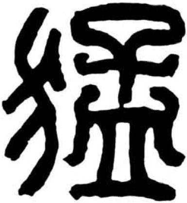 猛Měng现行较罕见姓氏。今北京、山西之运城、四川之成都等地有分布。《郑通志·氏族略》收载。《姓氏考略》注引 《路史》 云: “宋微子后。”此当系出子姓。又,《广韵》载: “猛,亦姓。《左传》晋大夫猛获之后。”然而《郑通志·氏族略》则云: “宋有猛获。望出城阳。” 《广韵》有误。宋之猛获,即微子之后裔。晋大夫“猛获”,当为 “猛足”之误。 明代有猛盖,顺宁府人。 猛měng❶勇猛,凶猛,猛烈。司馬相如《子虛賦》:“觀壯士之暴怒,與猛獸之恐懼。” ❷嚴厲,嚴酷。見“猛節”。 猛měnɡ❶有亟急义。兼作副词及形容词。陈造《寓吴门》诗:“兴阑~辍凌江棹,重看莺花茂苑春。”猛辍,迅急停止。王喆《带马行》词:“既要修持心不晓:这火院便先跳,~把家缘都不要。”此道士劝世词,“猛把”即“快把”,“跳”义同“逃”。马钰《满庭芳》词:“家缘~弃,更不疑惑,辨认阴魂阳魄。”又《捣练子》词:“悟冤亲,~离别,男儿志气,斩钉截铁。”明人传奇《采莲记》托名谢逸《花心动》词《闺情》:“~期月满会姮娥,谁知是、初生新月。”“猛期”亦犹云“亟待”。