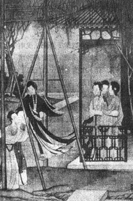 | 释义 | 仕女图 【作品赏析】: 此图是焦秉贞作《仕女图册》中的一幅(全册共十二幅)。 这一幅是描写春天来到,妇女们在室外活动的情景。中心人物是一青年妇女在荡秋千。身后有二人在推送,廊下三人在闲谈。庭院中几株老柳的枝条已有嫩芽,遍地已发青色,季节已经变了,一切有生命的东西都在复苏。 娇贵的妇女们也走出居室,开始了应时的户外活动。 画面布局丰满、严谨,刻画的人物娇弱、清秀,是封建社会上层妇女的生活写照。 。【作者介绍】: 焦秉贞(生卒年不详),山东济宁人。 康熙时曾任钦天监五官正。善绘画,多用工笔重彩,并吸取西方透视法,故其作品有特色。曾奉康熙命,绘《耕织图》四十六幅,刊刻成册,流传甚广,闻名一时。 因之他的画风也颇有影响,有弟子冷枚等人。 。