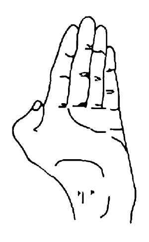 释义 | 猿形手 猿形手monkey paw又称“扁平手”。正中神经麻痹的体征之一。病人手的两个横弓消失,大鱼际肌萎缩,掌心扁平,拇指伸直与其他手指在同一水平面上,且不能对掌,食指与中指常伸直不能弯曲,形如猿手。 检查时还可见手背皮肤潮红或苍白,多汗或无汗,有时可见皮肤角化过度或皮肤变薄等。食指与中指的掌面感觉常减退。 本征见于正中神经麻痹,其损伤可由肩关节脱位、肘关节外伤、肱骨或桡骨骨折、腕部穿通伤、上臂或前臂受压、腕管道中被滑膜炎、肿瘤或增厚的韧带压迫等所致。